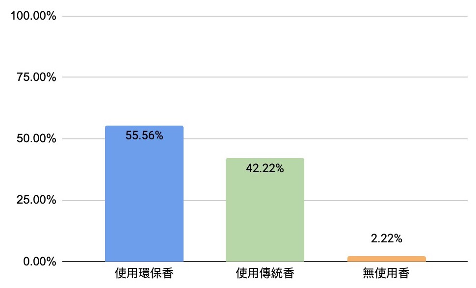 在環保意識的驅使下,台灣不少廟宇推動減少焚燒金紙及香支的行動,或改用焚燒後灰燼較輕、較不易產生濃煙的環保金紙;環保香則因香腳更細,製作時裹上的粉末更少,可以改善煙味過重的問題。