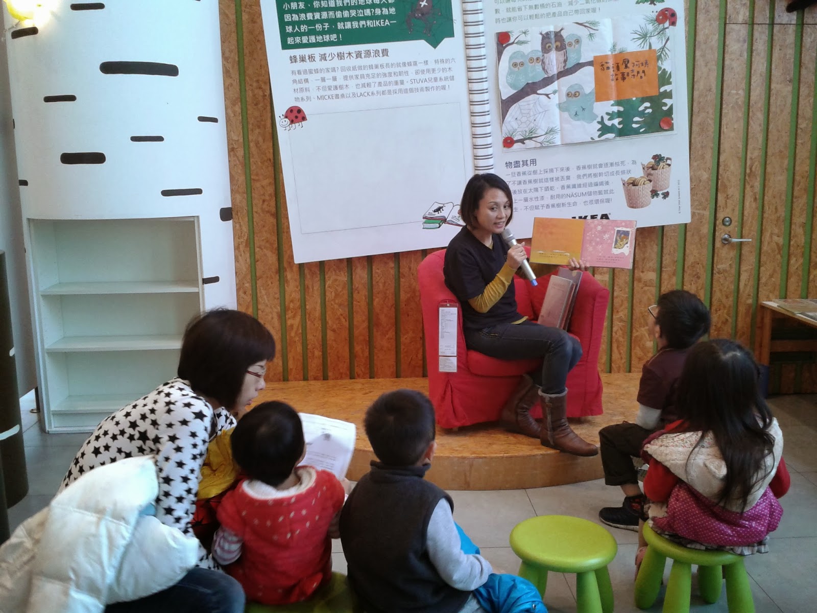 【記者王若嵐報導】貓頭鷹圖書館每週三下午兩點半到三點半,在新莊IKEA三樓,有外送故事湯說故事活動,由圖書館志工為小朋友以及家長朗讀繪本故事。