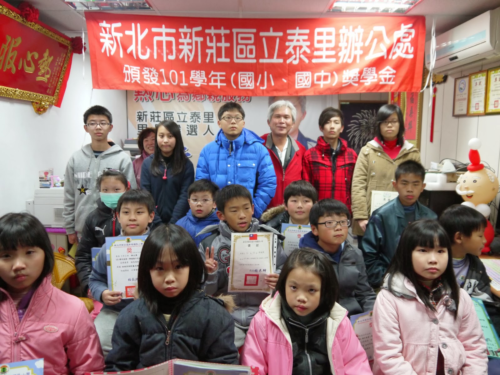 【記者陳彥文報導】立泰里長許文章十二月廿九日發放獎學金給里內表現優良的國中、小生。他希望透過這樣的獎勵,小孩可以更加努力學習。