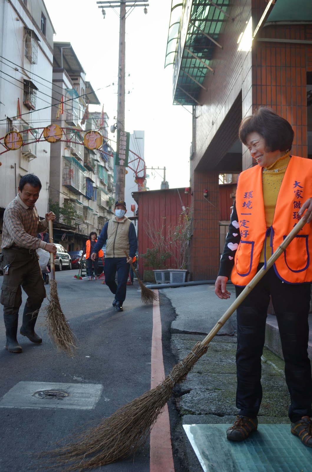 【記者卓玫均報導】難得的周末假日,多位身穿橘背心、手拿竹掃帚的人卻在清掃光華里內各巷道。他們是光華里的環保義工,只要沒下雨,他們就會在每月的第四個周末為整個里進行大掃除。