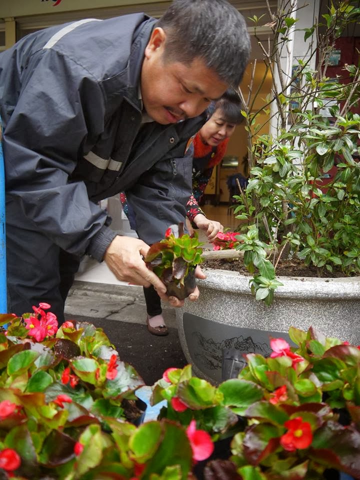 陳通助說,購買公用盆栽後,不少里民也會自己種植喜歡的植物,里上的環境也變得比較清新。里民黃美麗還開玩笑地說,前幾天就想買花來種一下,「里長一定是聽到我們的心聲,馬上就來種花了。」