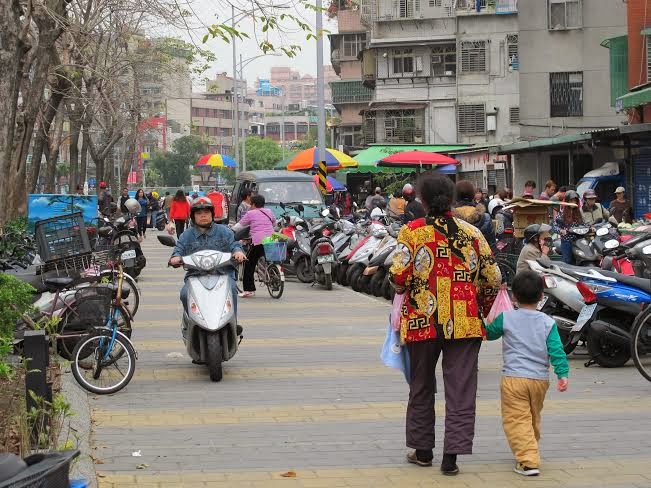 【記者姜彥竹特稿】宏泰市場是在中港廣場旁的傳統市場,因中港廣場的建立,使路寬變窄、缺乏大量機車停車格,導致機車亂停、行駛在人行道上的交通問題。