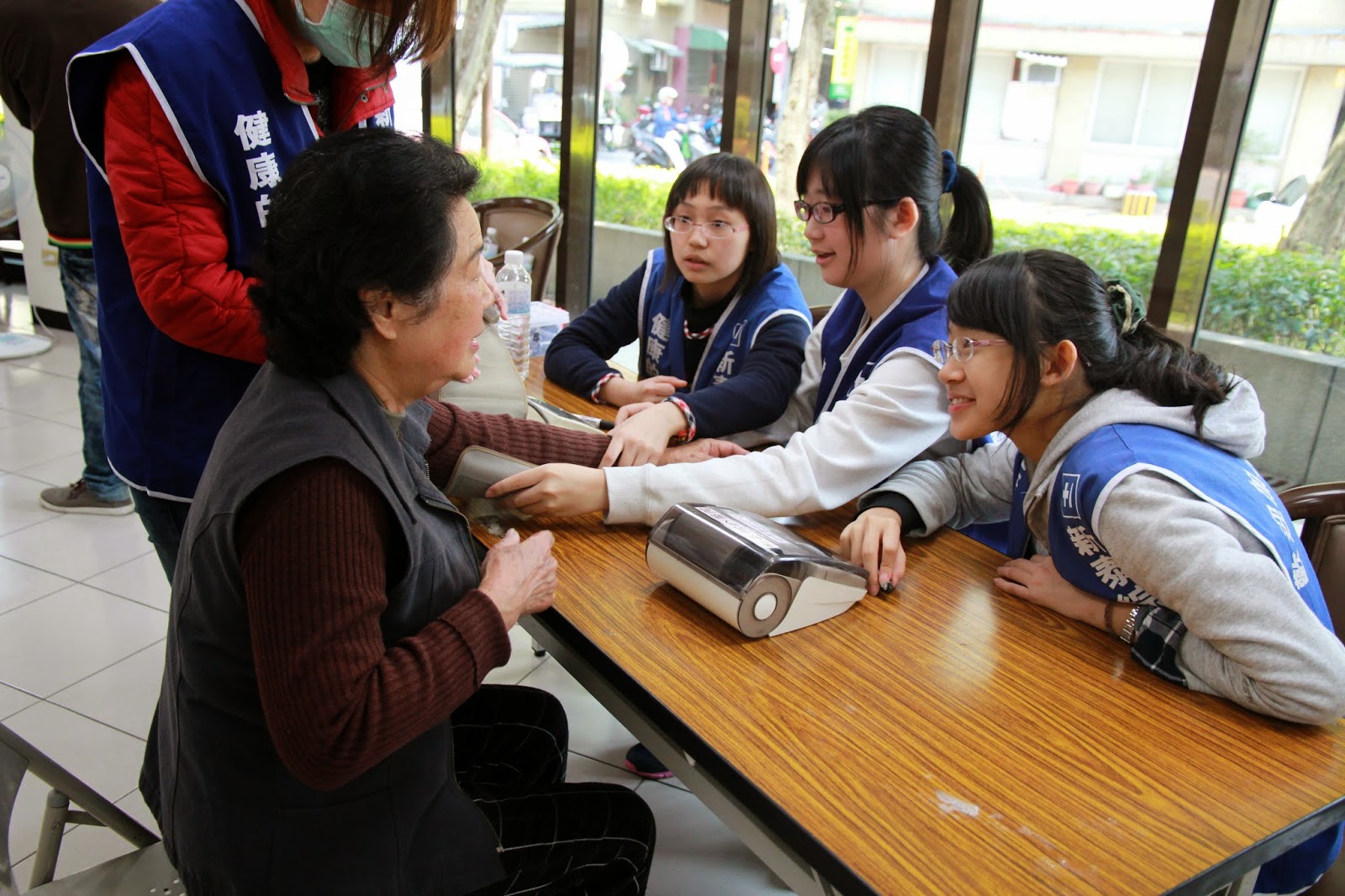 ▲新莊高中的學生正在幫民眾量血壓。 攝影/李珮綺