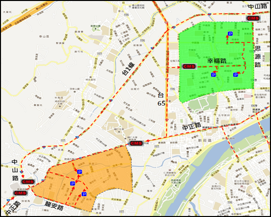 ▲新莊區圖示停車導引系統位置圖。 新北市政府交通局提供