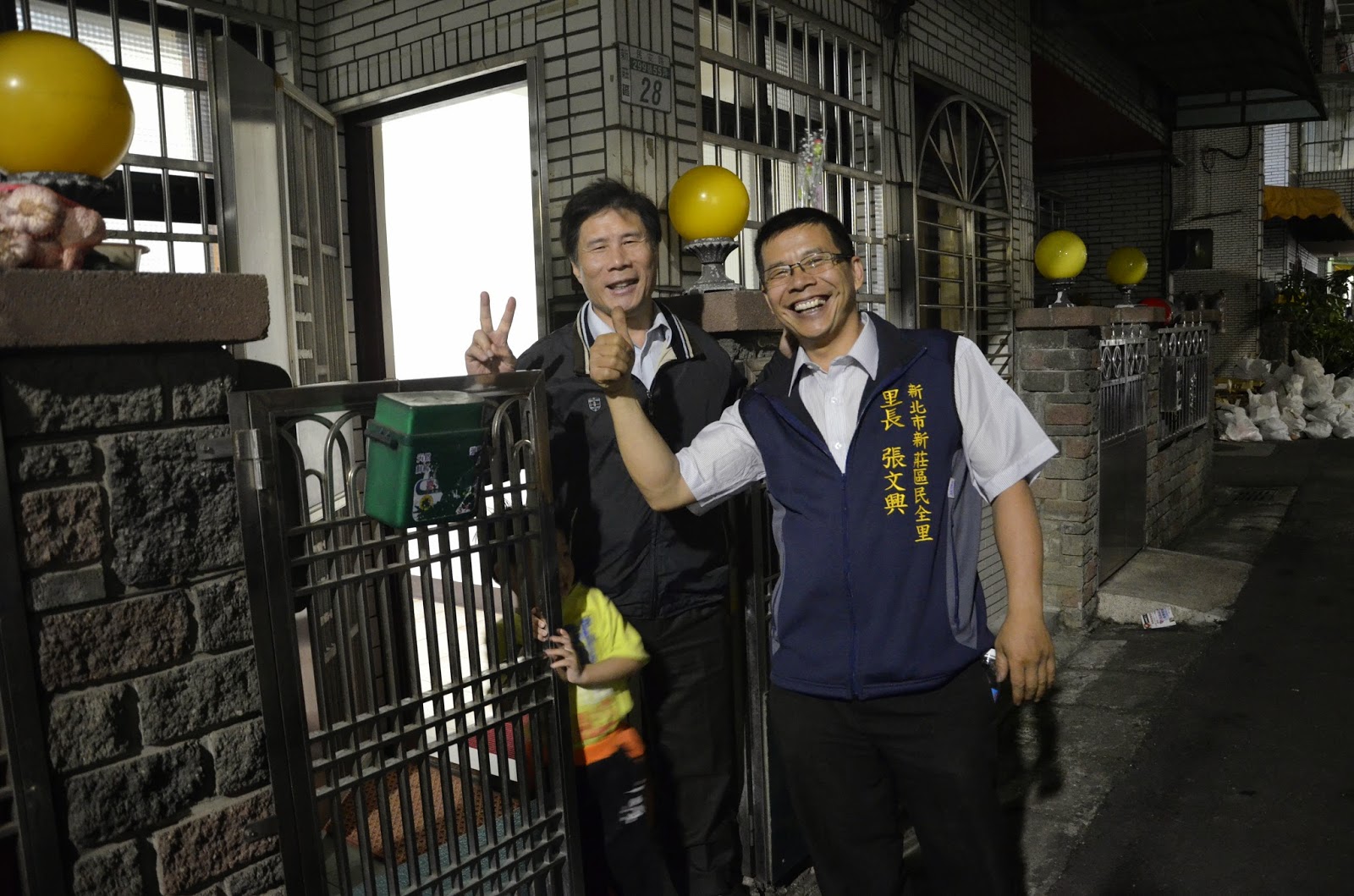 ▲里長逐戶發送康乃馨,里民開心與里長張文興(右)合照。 攝影/郭乃維