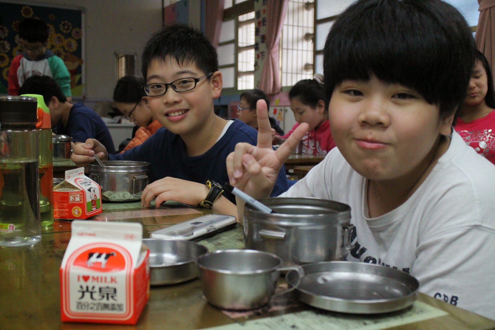 ▲中信國小的學生正開心的吃學校營養午餐。 攝影/黃于庭