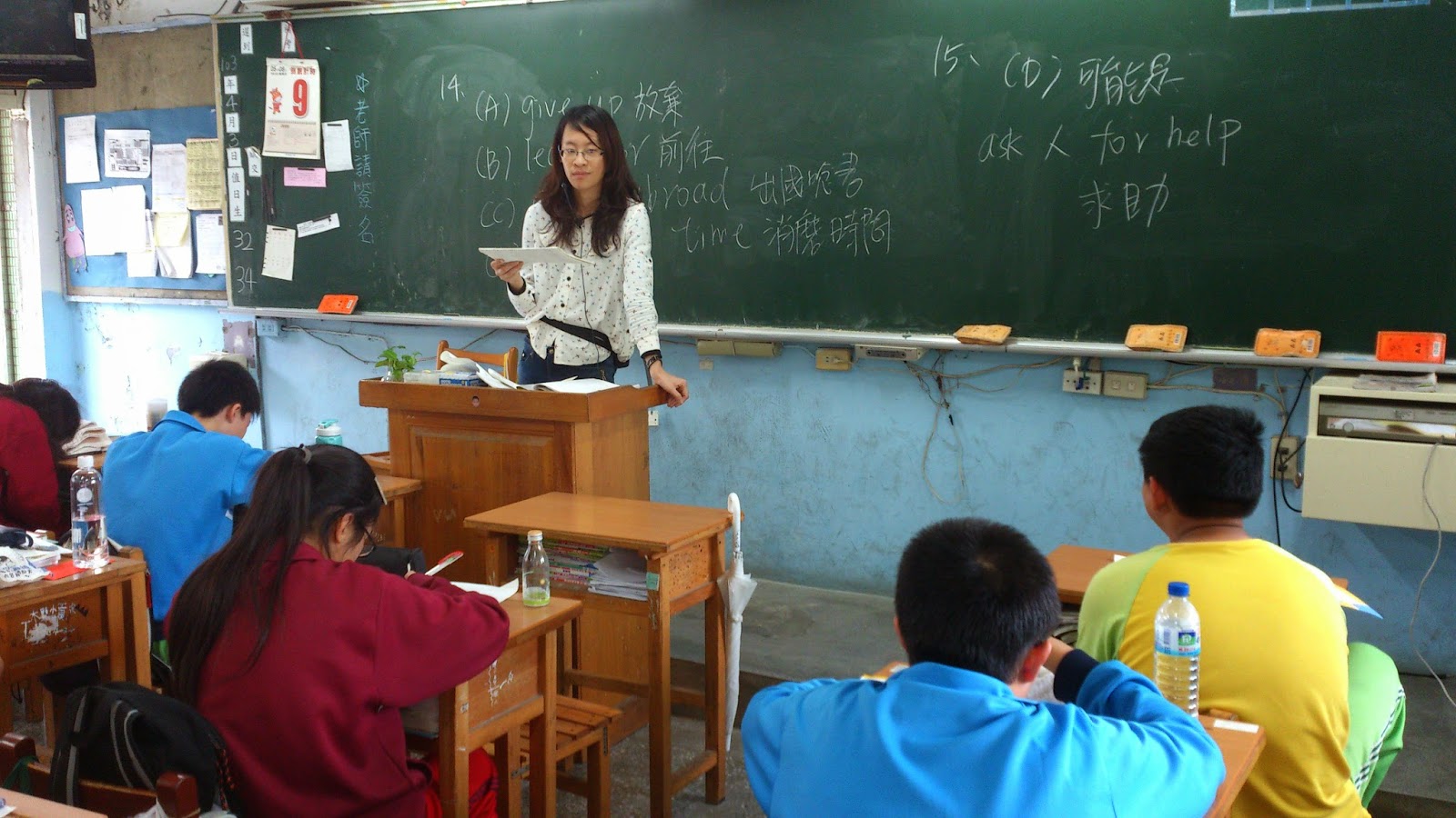 ▲頭前國中英文老師廖雅平正在等待學生作答。 攝影/黃于庭
