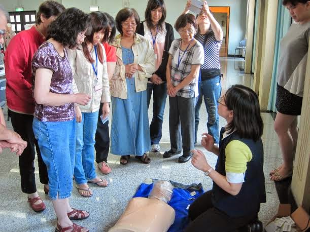 ▲講師江貞紅正在講述CPR的步驟,參加學員皆專心聆聽。 新莊區公所社會課提供