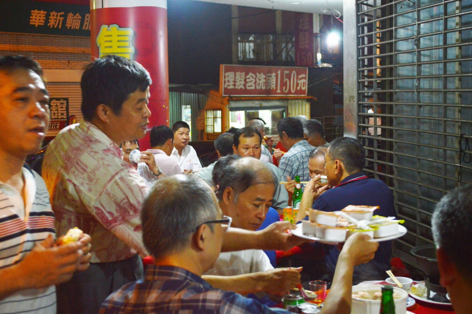 ▲中信里長林阿元(左二)端菜給守望相助隊隊員。 攝影/邱雅鈴