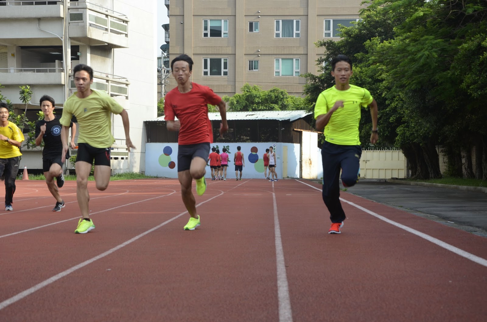 ▲田徑隊練習的模樣,圖為楊清潭(左)、鄭琨翰(中)、朱泓致(右)。 攝影/郭乃維