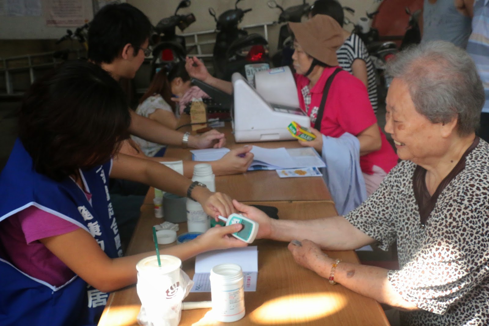 ▲民眾(右)接受血糖檢測 攝影/楊雅筑