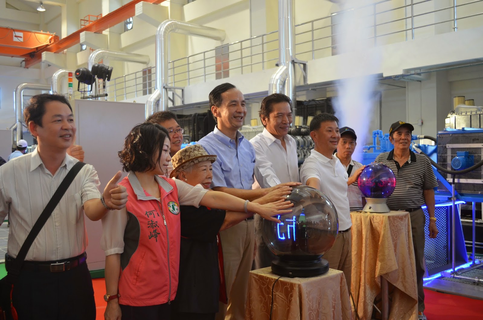 ▲新北市市長朱立倫(中)在化成抽水站啟用典禮中剪綵。 攝影/李慧盈