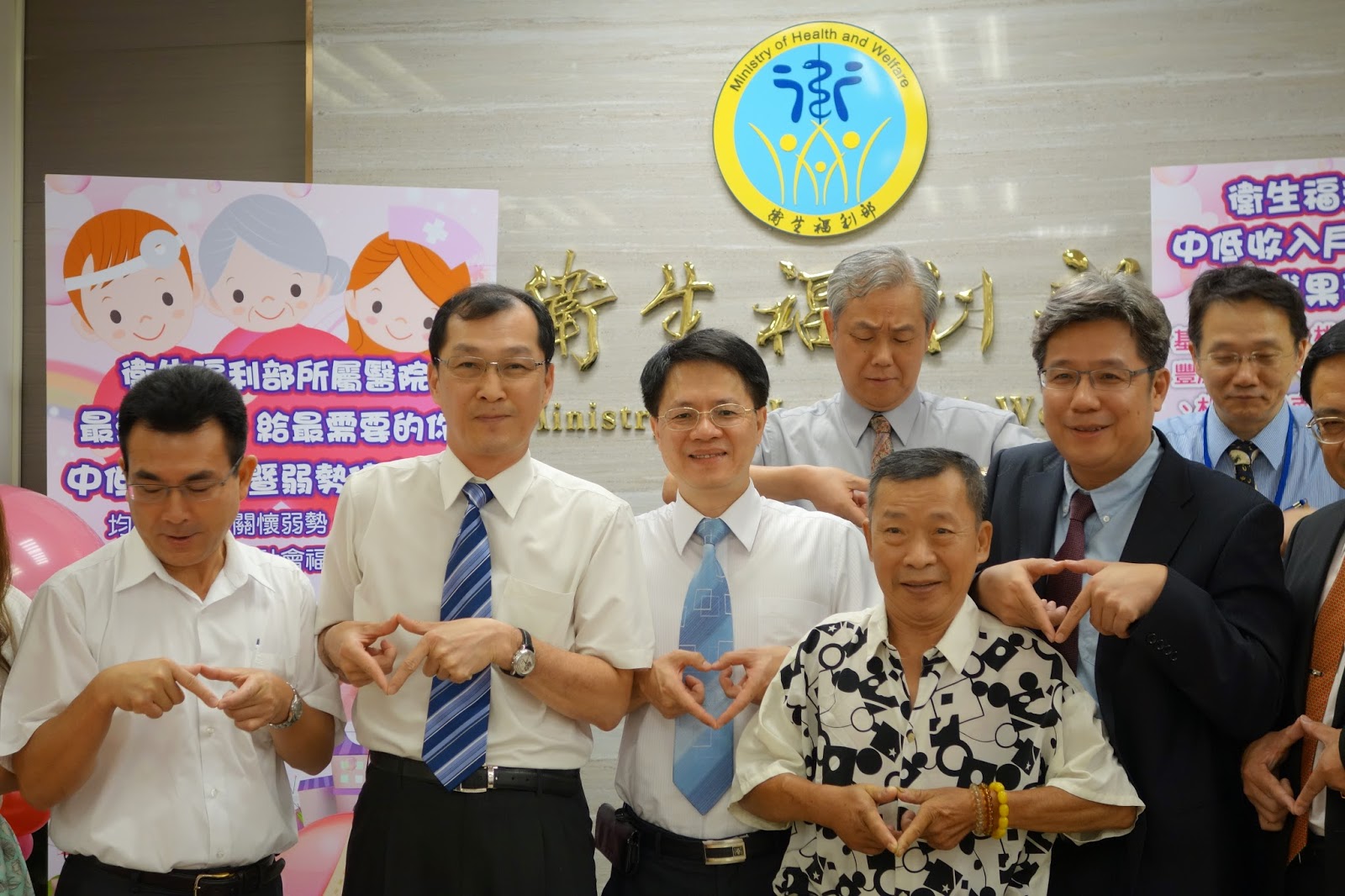 ▲臺北醫院院長徐錦池 (左三)、個案黃先生(前排左四)、醫管會林慶豐執行長(左五)合照留念。