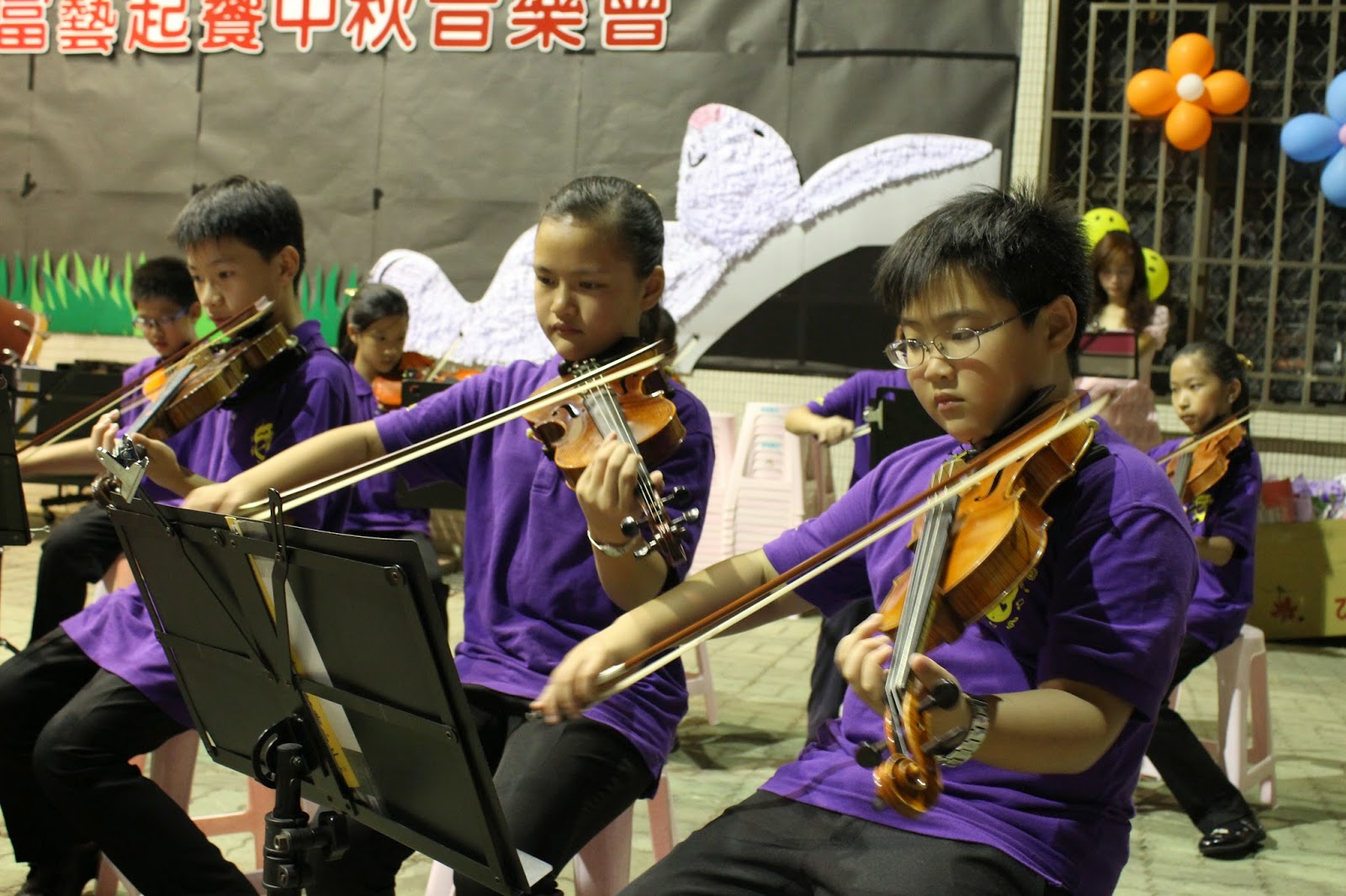 ▲榮富國小弦樂團學生於中秋音樂會演出,表情十分專注。