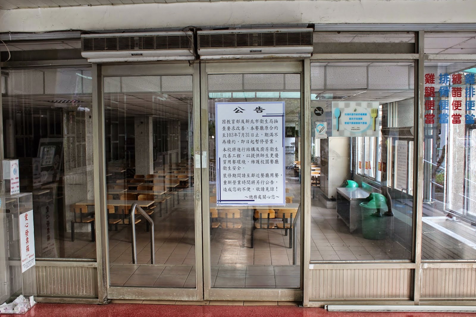| ▲以往人潮眾多的文學院餐聽,目前已被貼上公告,餐廳內部空蕩蕩。 攝影/褚信暄 |