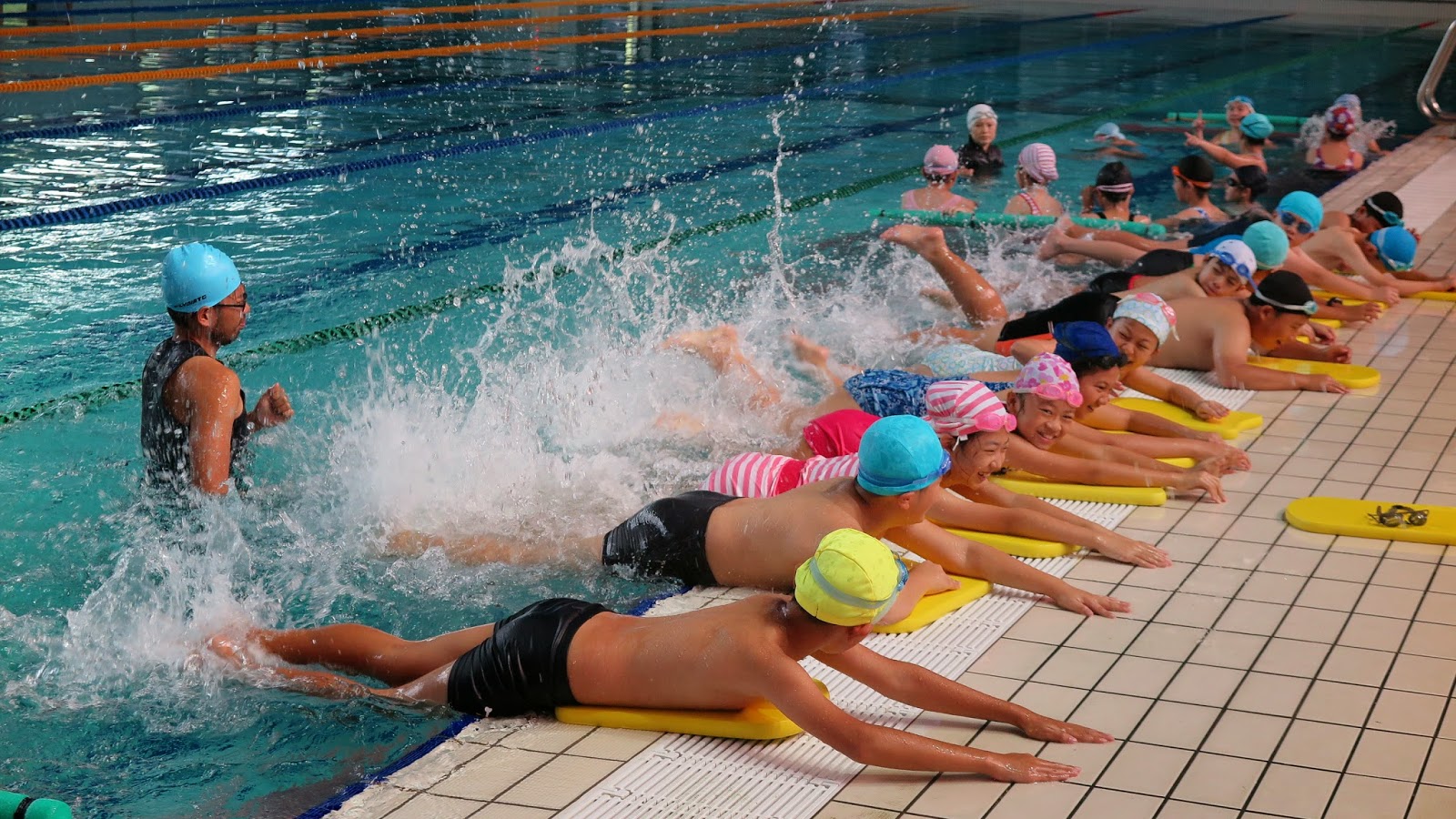 新莊國民運動中心營運部人員李紋娟說,運動中心除了與學校合作,本身也有開設游泳課程。中港國小學生到運動中心上課,皆會經過程度分級,由多位專業教練在不同水道指導。