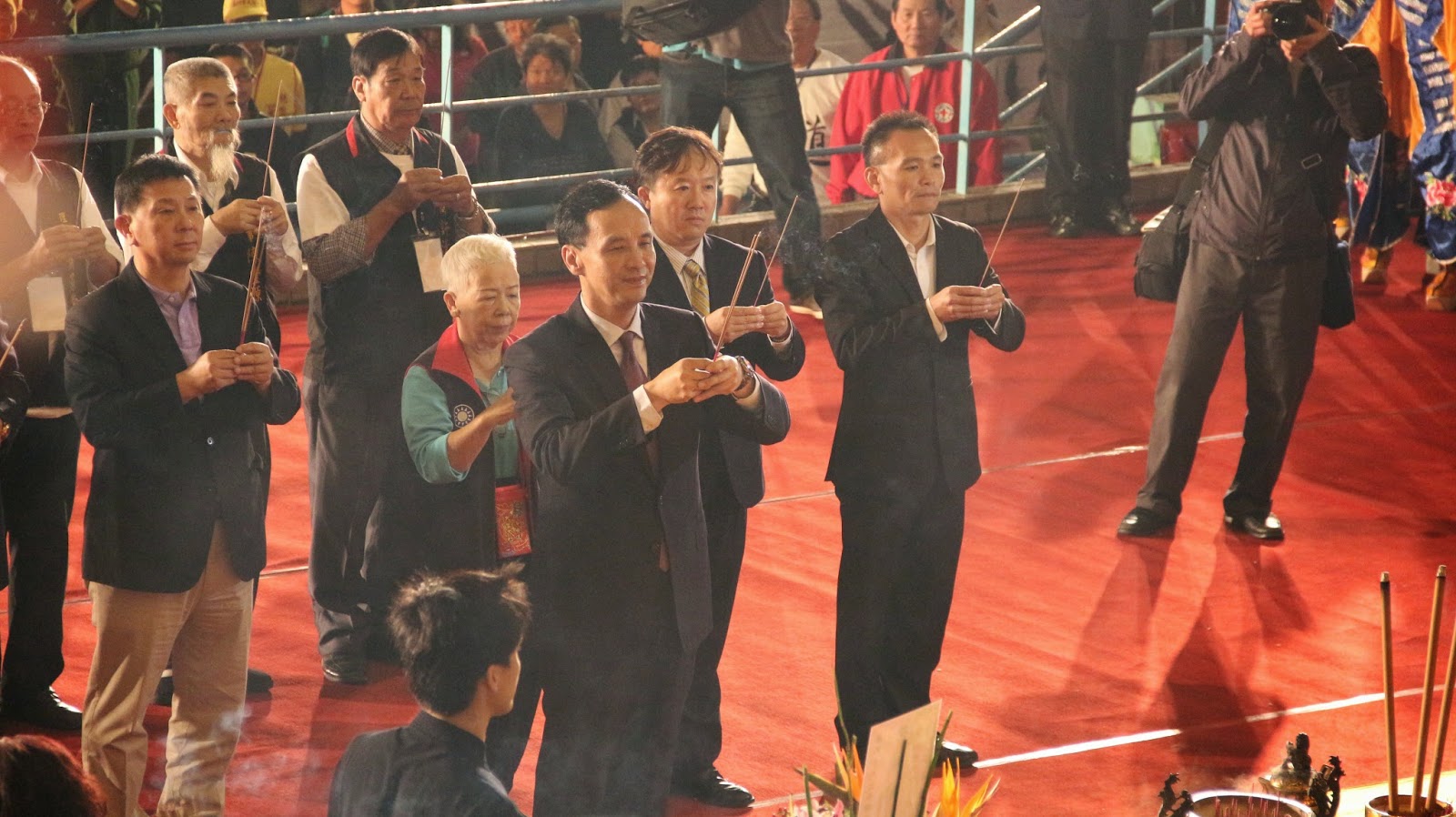 ▲新北市長朱立倫(前排中)出席玄天上帝文化祭安座大典。
