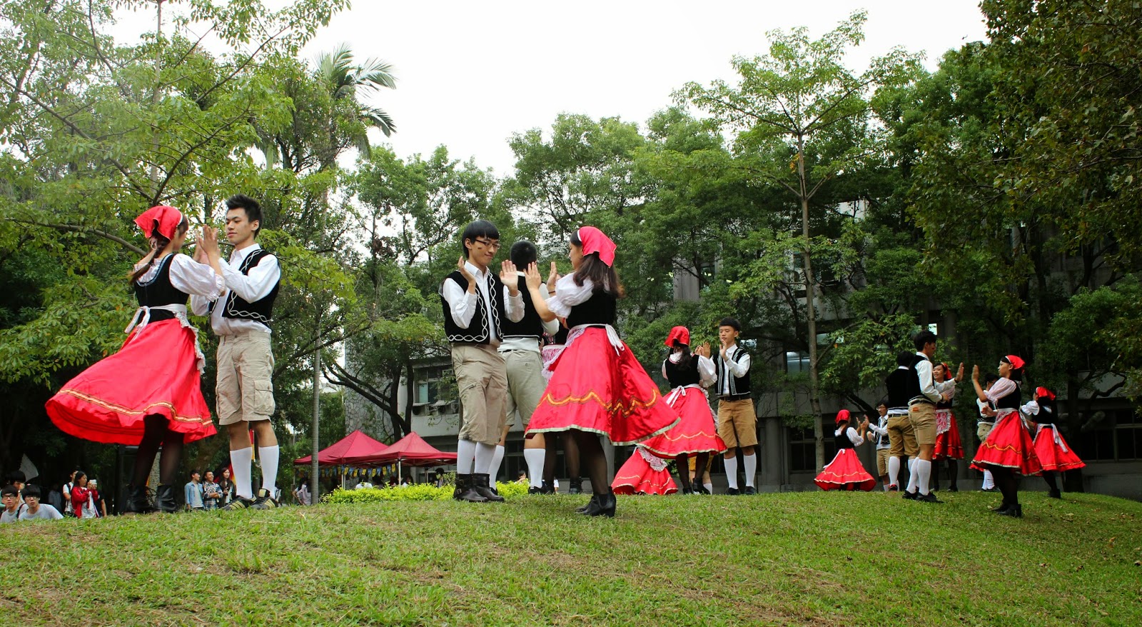 ▲輔仁大學德文系一年級學生表演德國傳統舞蹈「擊鞋舞」。