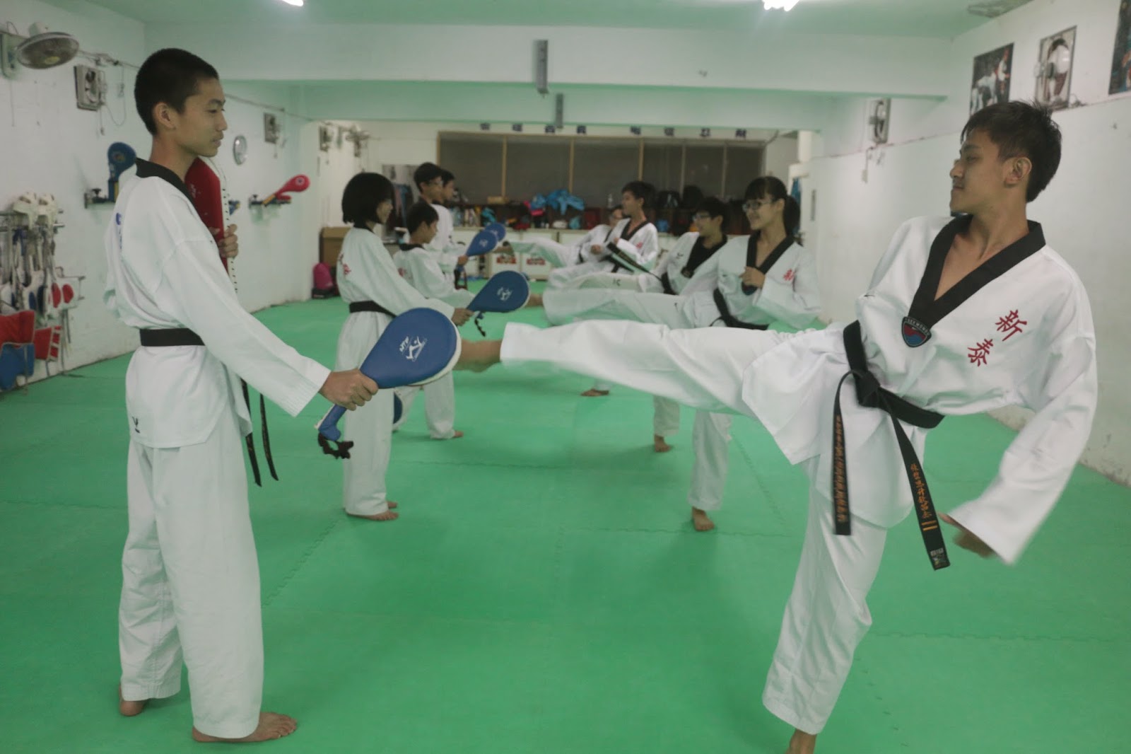 跆拳道是新泰國中的重點培育體育項目之一,跆拳隊隊員對於練習環境與設備均感到非常滿意。新泰國中校長張國振和體育組長王麗玲若知道學生有需求,便會積極爭取經費。九年廿一班江京翰說:「我們的練習場地有冷氣、除濕機、製冰機和防護具,設備很充裕。學校還會給我們牛奶喝。」