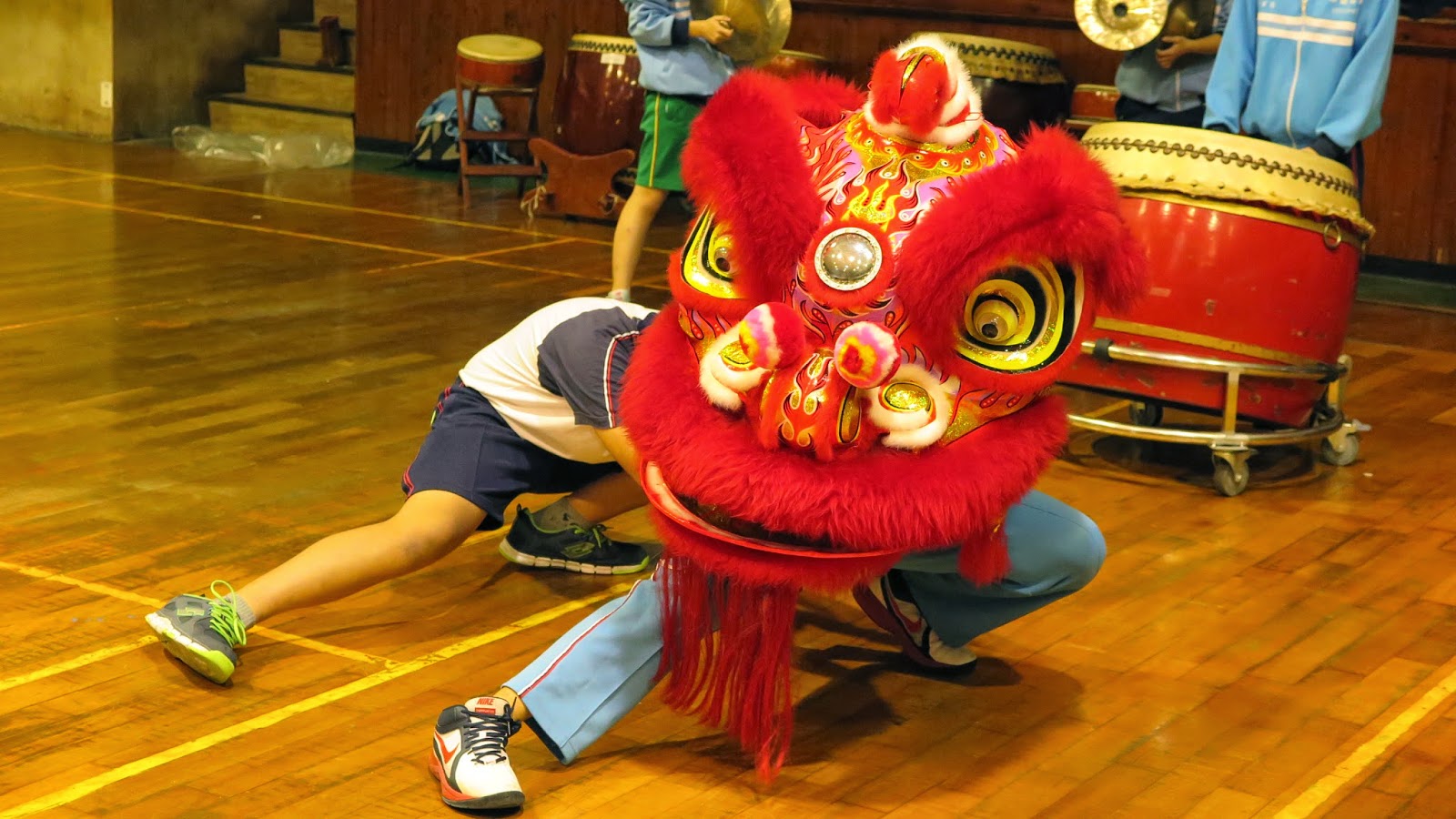 ▲新莊國中鼓藝團團員固定於每個星期三晚上練習打鼓和舞獅。