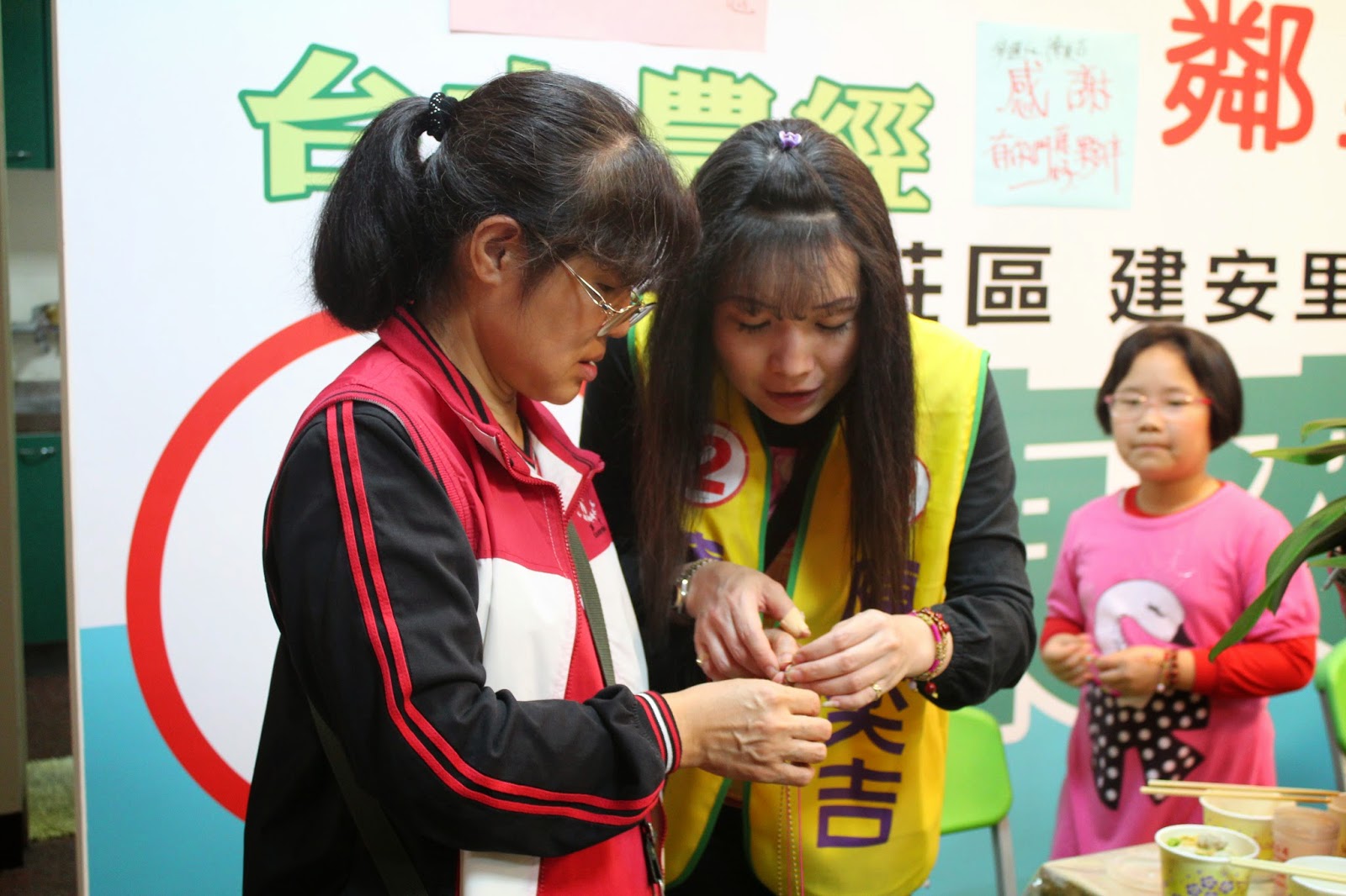 【記者張俐禎報導】建安里長候選人陳奕吉競選總部十一月初開始每周休假日固定舉辦一天的主題活動。十一月十六日舉行編串手鍊的活動,由陳奕吉成立的婦女後援會會長李婉梅負責教授編串招財、避邪、防小人的手鍊,吸引許多家庭主婦參加。