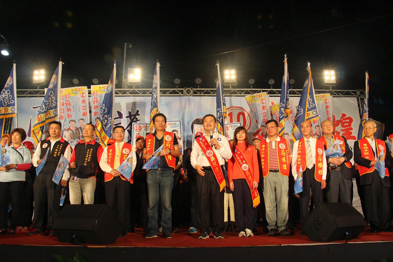 造勢晚會現場還特地安排兩個大型投影幕,讓周圍民眾可以清楚看到舞台。除了朱立倫,前台北縣長蔡家福、立委李鴻鈞、新莊區長許炳崑、前台北縣議員葉正森和林重信、前新莊代表會副主席吳原豪都到場站台。