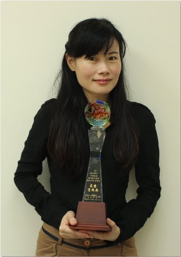 ▲芥菜總會社資部組長常琬瑤與「2014華人草根創意微電影金善獎」「最佳剪輯獎」獎座合影。