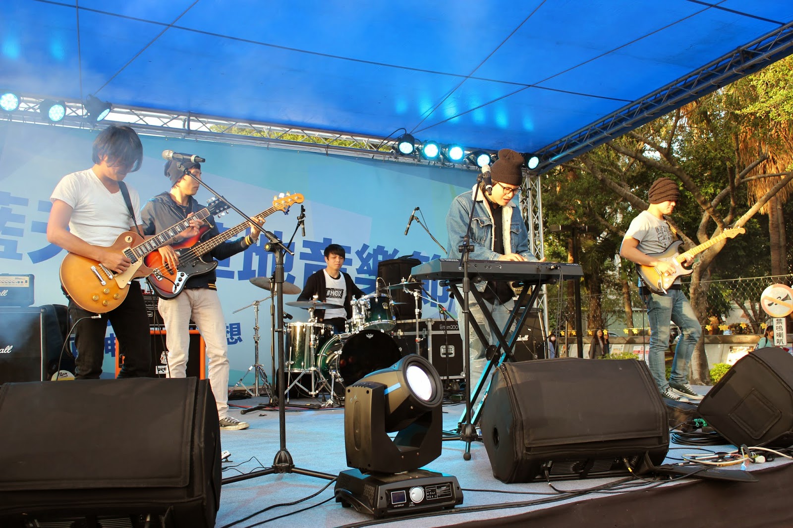 該活動為第二屆舉辦,表演者多為大學生或是剛畢業的年輕人所組成的樂團。藍天象徵渴望在遼闊天空飛翔的夢想,而草地則代表即使經歷狂風暴雨也會緊抓地面的野草,就像是所有的創作樂團,即便遇到挫折,也會堅持初衷,繼續創作音樂。圖為參與演出的學生樂團。