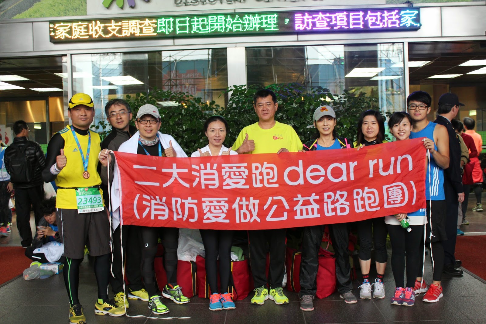 ▲新北市消防局第二大隊成立的「二大消愛跑 dear run」成員一起參加二○一四年台北富邦馬拉松。