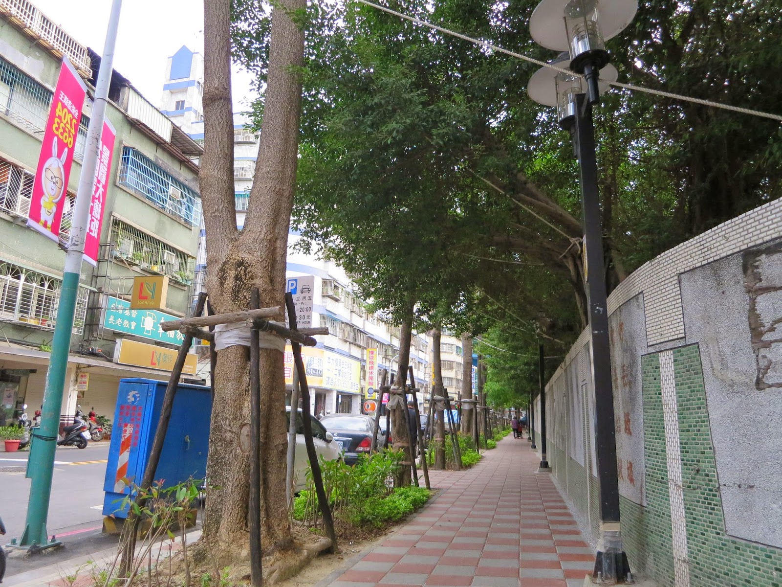 ▲福樂街七十一巷人行道,已將路燈移至路樹中間,降低民眾誤撞風險。