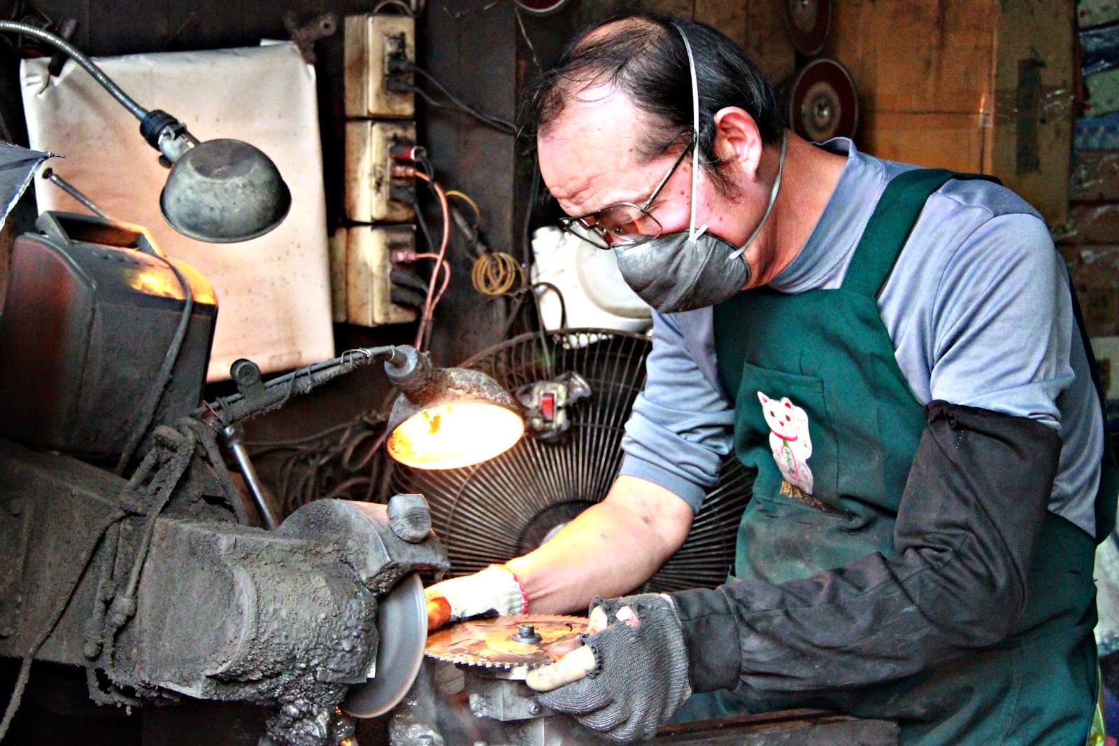 「這工作是夕陽工業啦,現在已經沒有什麼人要做了。」徐厚仁說,自己讀的書不多,所以當大家都選擇停業或離開老街轉行時,他卻依然專注在「磨鋸」工作上。即使現今許多工廠都使用拋棄式的鋸片,再加上客源不如以往固定,導致現在一天送來待磨的鋸片量只剩廿、卅片。這份工作雖然吃力、工作時數長,但徐厚仁從無工作倦怠的時候,用這份工作平安度過每一天,就是他目前最大的心願。