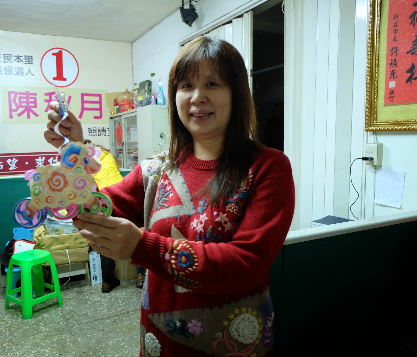 民本里辦公室在元宵前夕向里民派發燈籠。 攝影/曹嘉詠