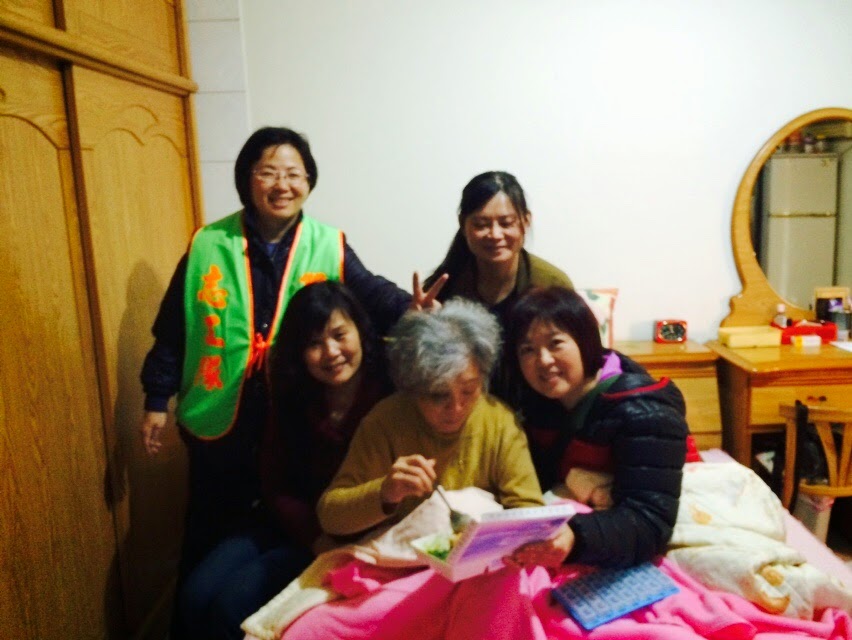 送中餐,並且關心阿嬤前幾日摔傷的傷勢。 攝影/許資旻