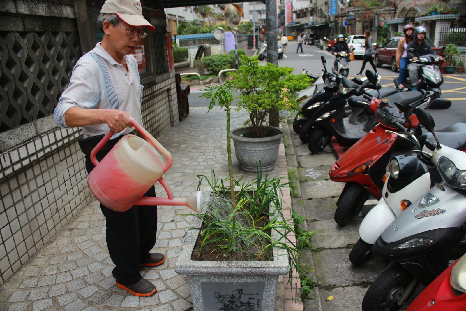 對於中港里長許翠華來說,原本由新莊區公所提供、擺在路邊的盆栽造景,是個讓她十分困擾的問題。「原本這裡的盆栽,就是讓遛狗經過的人們,丟狗大便與垃圾的地方。」許翠華說,從前由區公所管理的盆栽造景,由於平時疏於照顧,後來反而成了里內衛生環境髒亂的源頭之一。