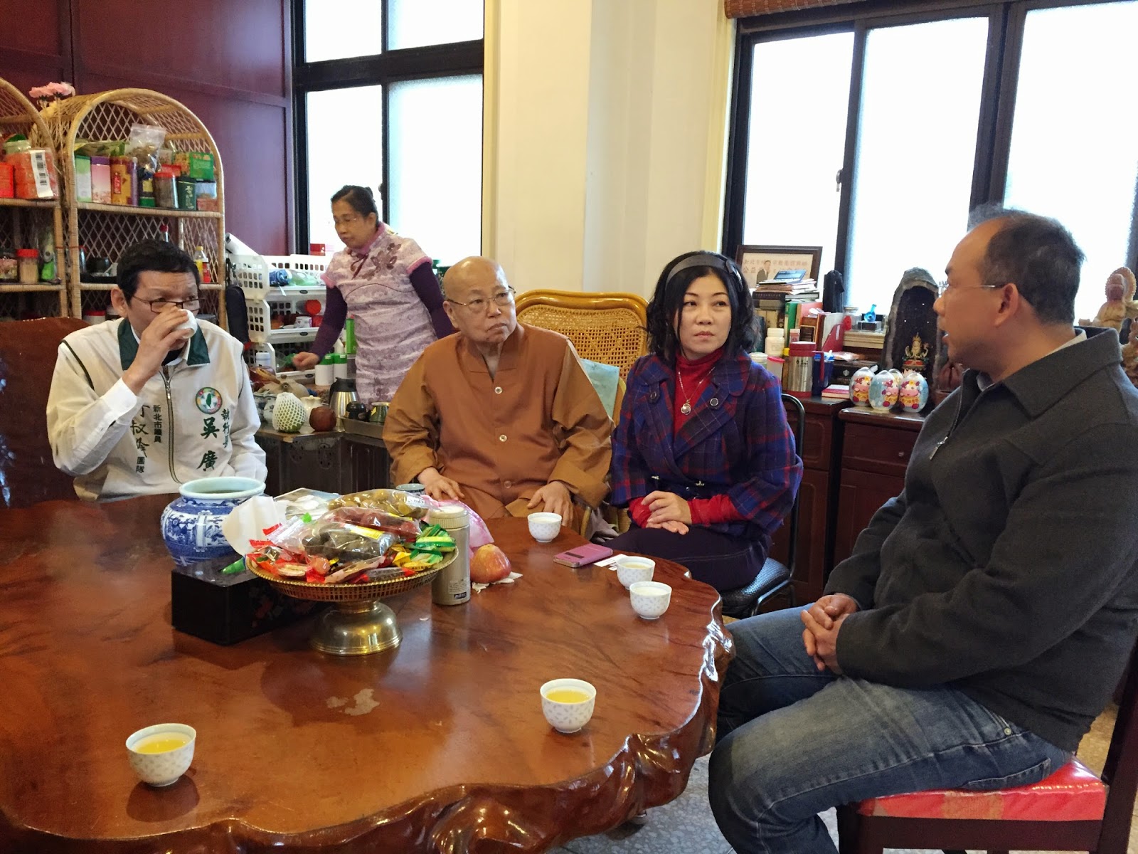 | ▲善導庵廟方(左二)向議員何淑峰(右二)反映圍牆修復 問題,外包廠商晉偉營造黃副總(右一)經協調後同意重 建為原高度圍牆。 攝影/許政榆 |
