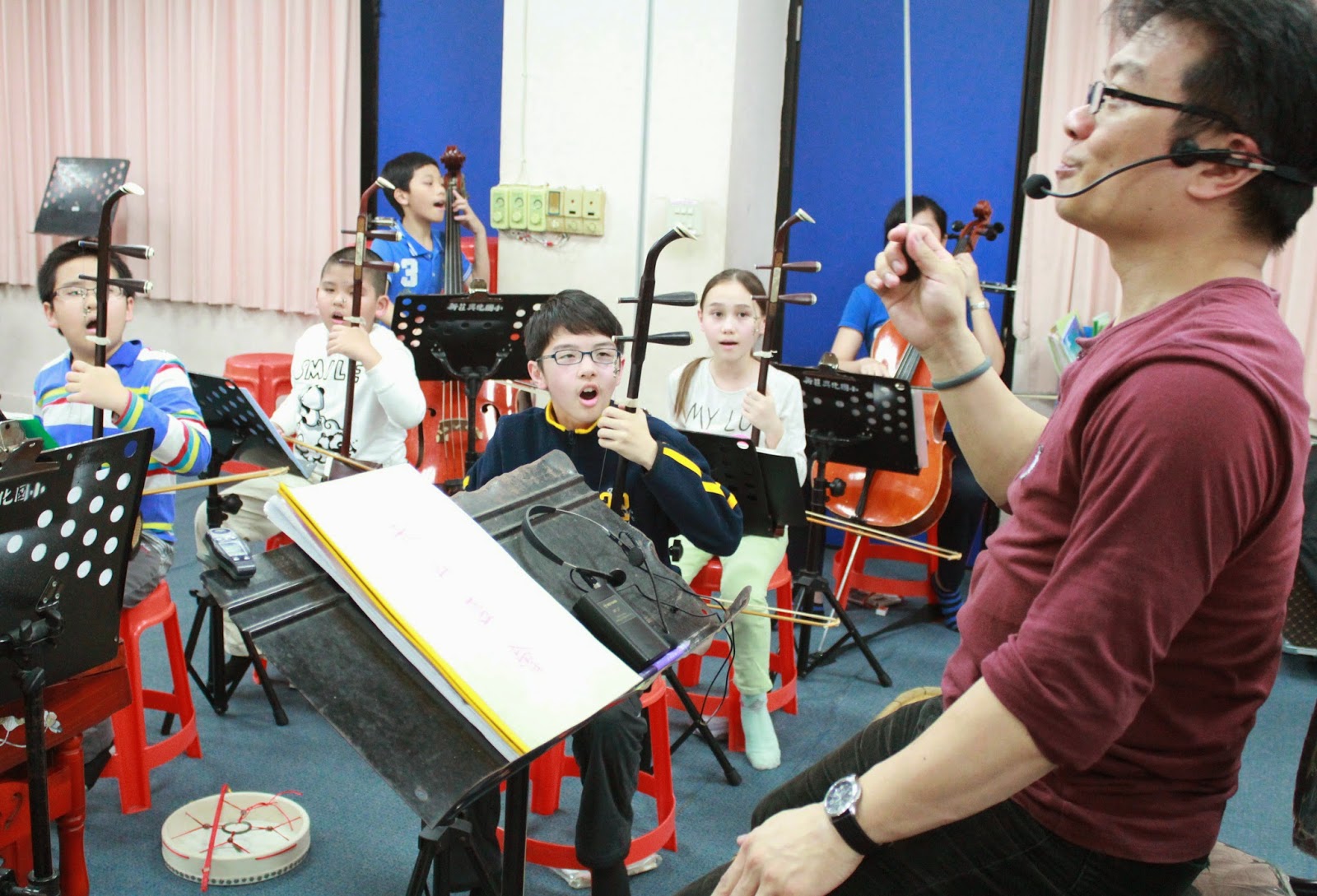 社團指導老師邱瀅如說,有些團光是拉胡琴的就有廿幾人,「我們學校只有五、六人,聲音的厚度就會差很多。」