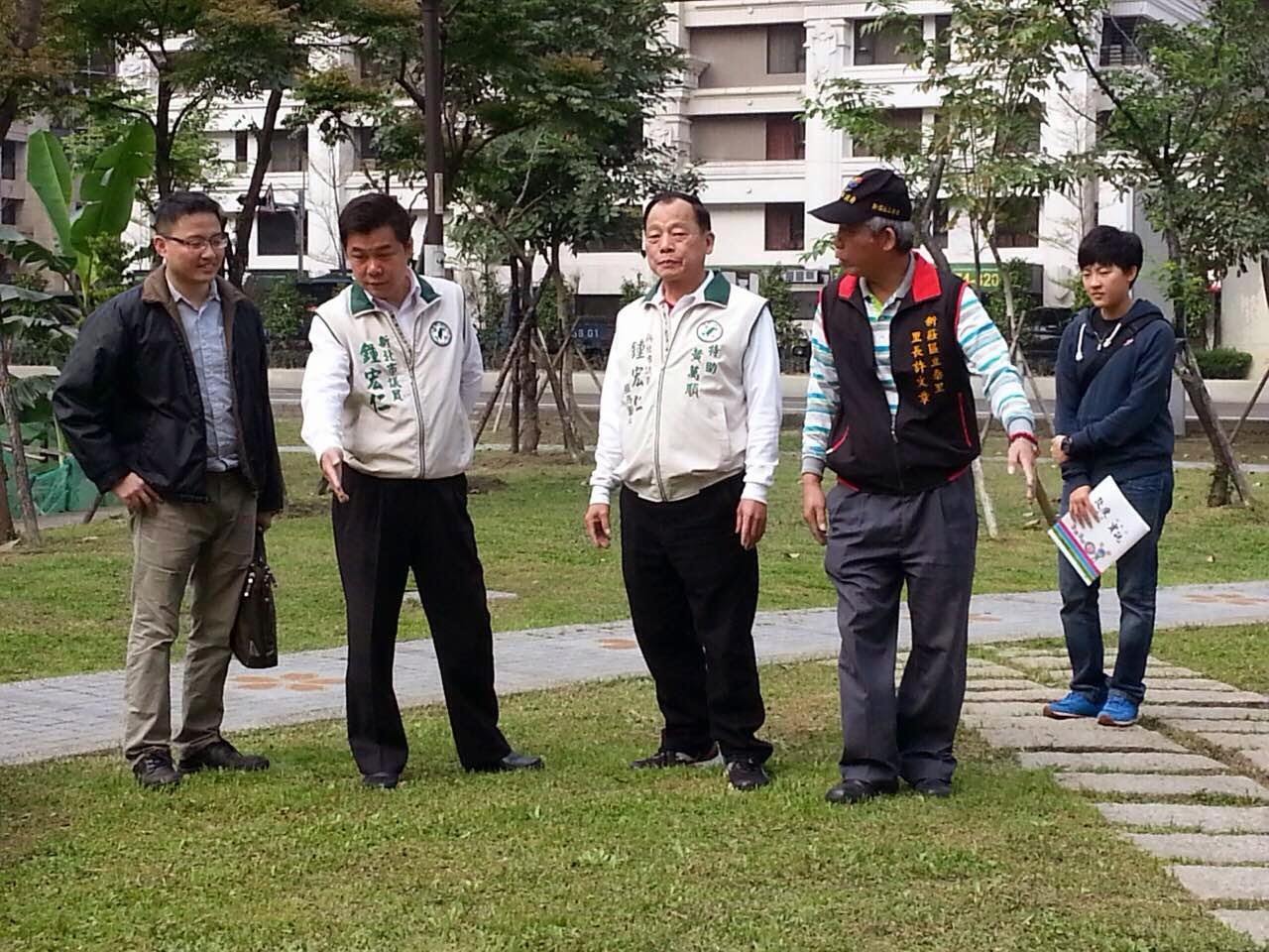 ▲議員鍾宏仁(左二)與立泰里里長許文章(右二)參加YouBike站會勘。