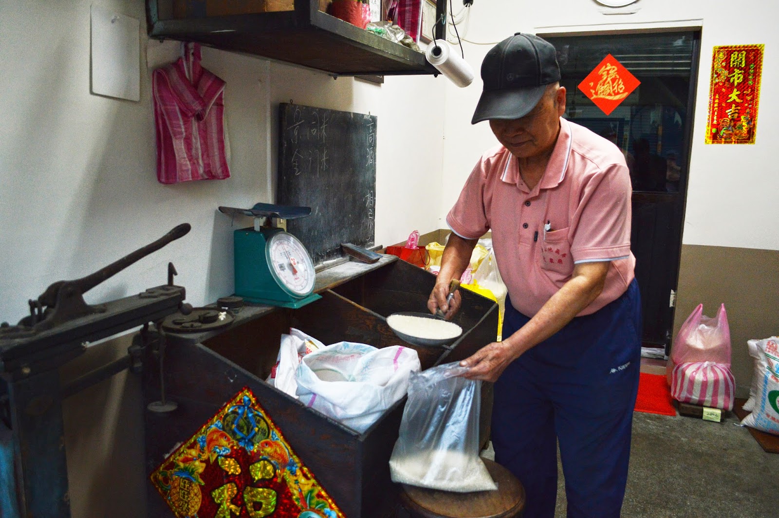 【記者李萱特稿】位在化成路上的聚源糧食行,老闆葉重雄沒有刻意宣傳,只掛著一個「米」字的小牌子。但這間已有五十餘年歷史的米店,早已是工廠熟識的零售商。
