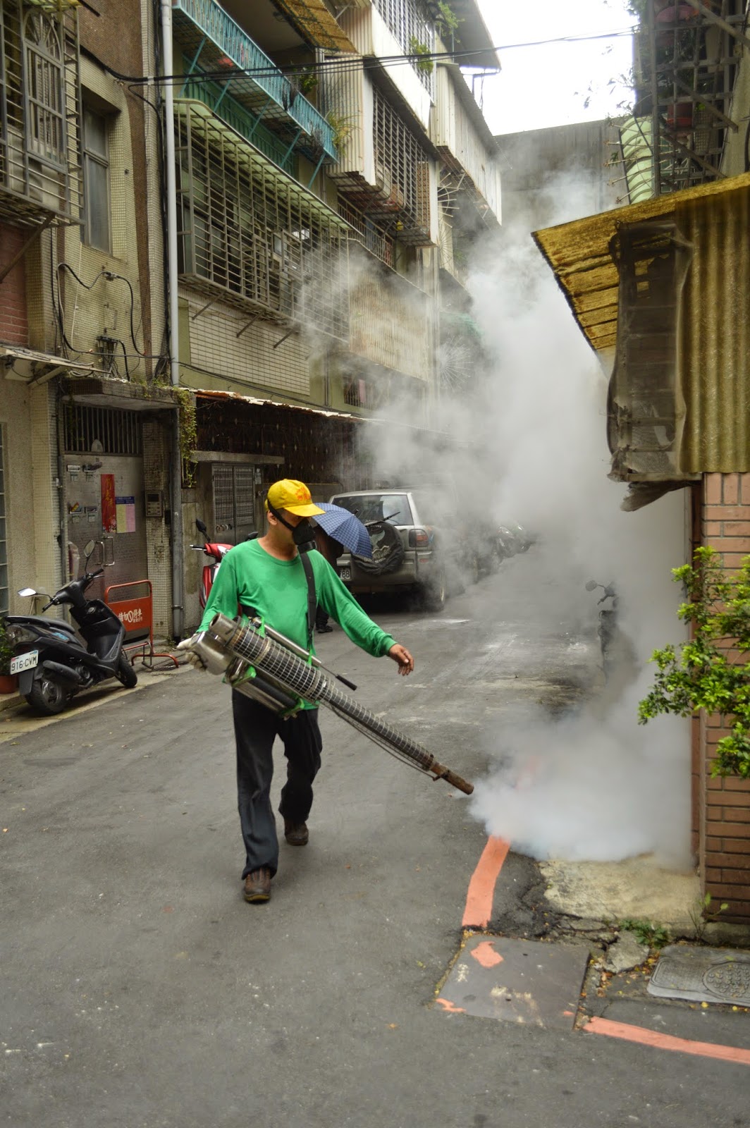 消毒作業選在下午,是因為里長體諒建中街上有早餐店、攤販、店家等,因此選在中午過後,特別避開吃飯及店家做生意的時間。