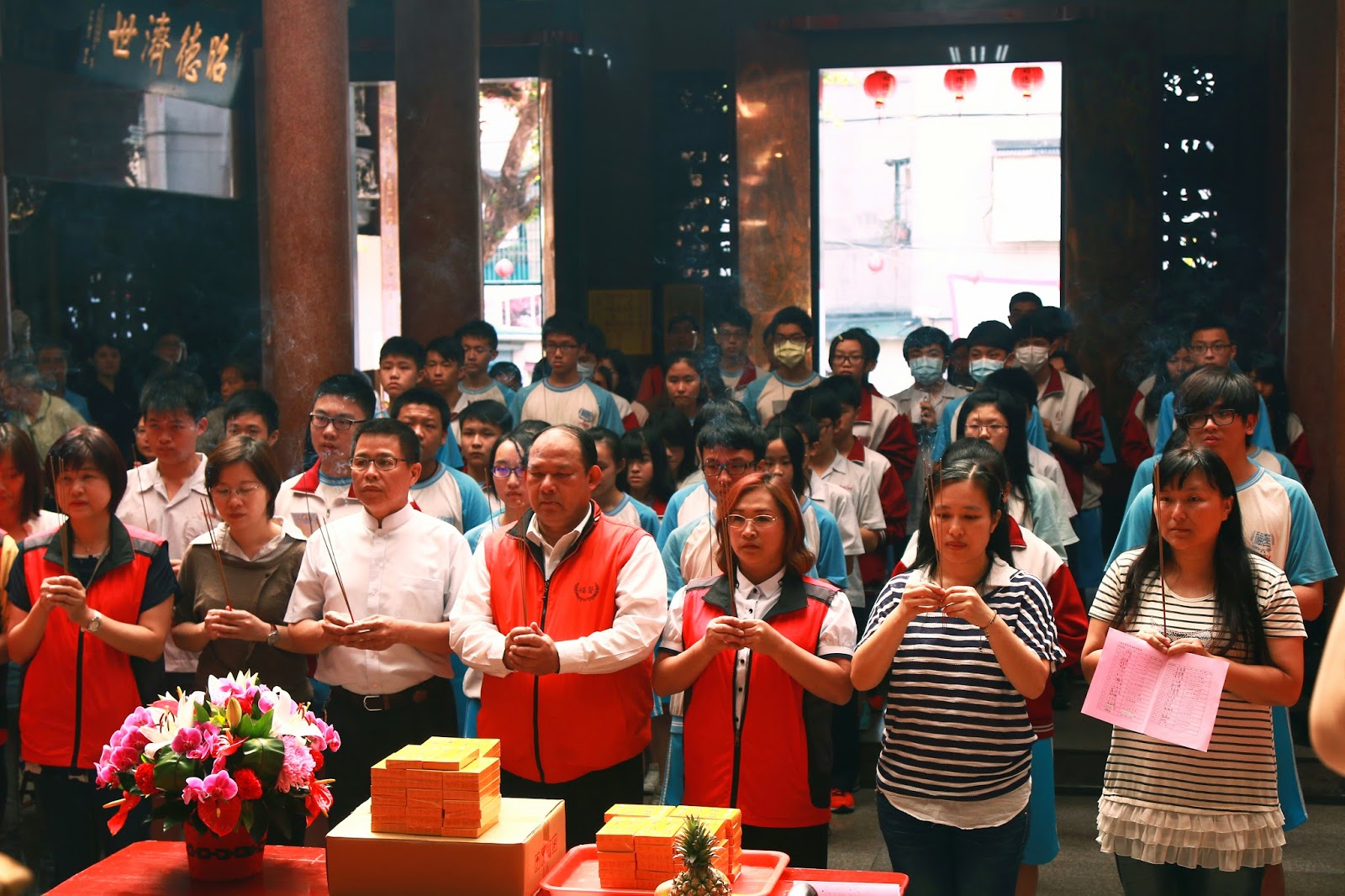 ▲福營國中國三考生前往後港昭德宮,祈求基測考試順利。