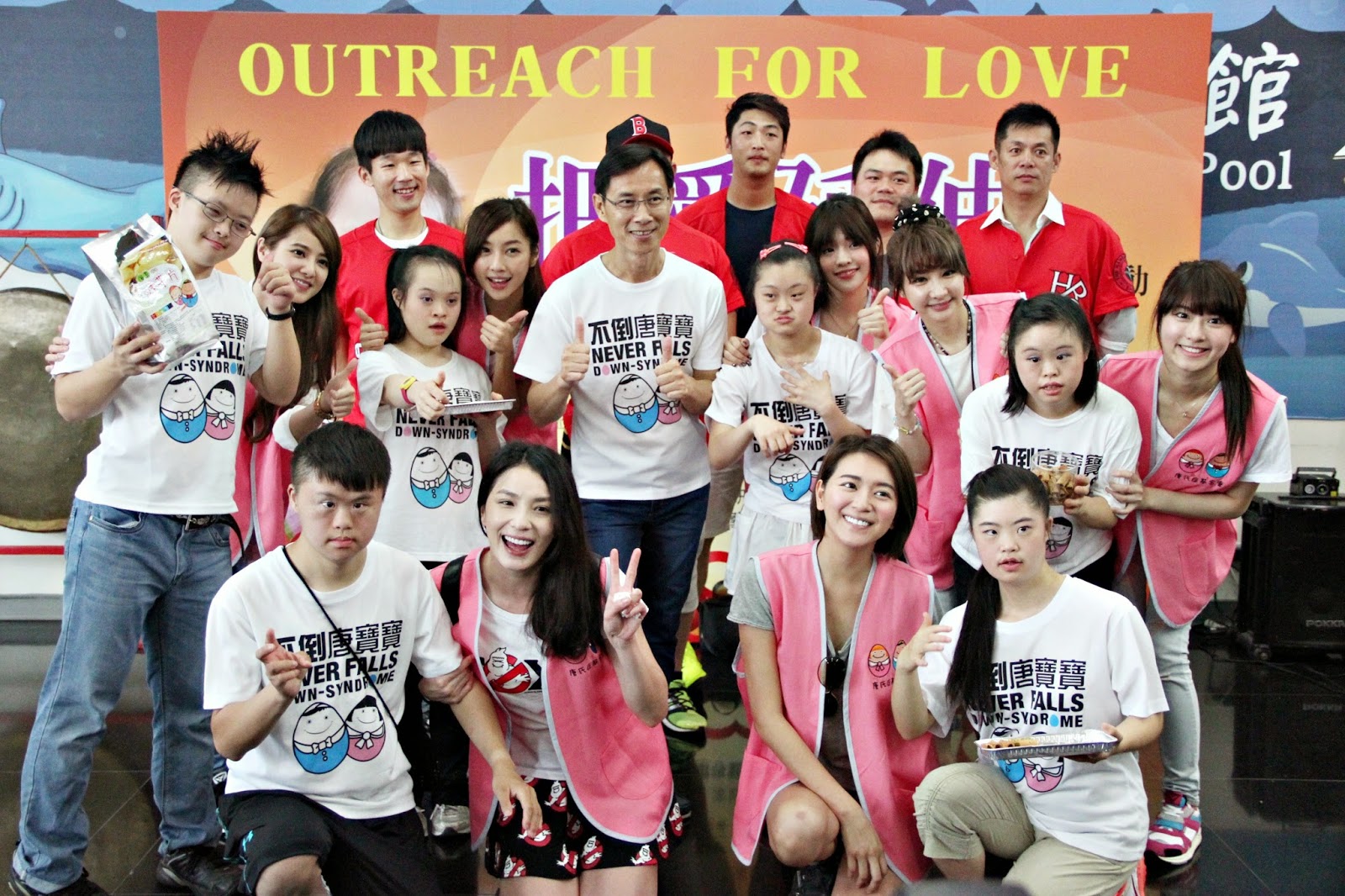 【記者李宛庭報導】唐氏症基金會「愛不囉嗦」庇護商店舉辦「把愛延伸」公益義賣活動,五月十七日於新莊國民運動中心館舉行,下午邀請「漢堡蛋棒球隊」藝人,包括汪建民、天氣女孩、李妍憬、王書喬等人到場助陣,鼓勵社會大眾,用行動支持唐寶寶烘焙的手工餅乾,以及欣賞他們努力練習的舞蹈表演成果。