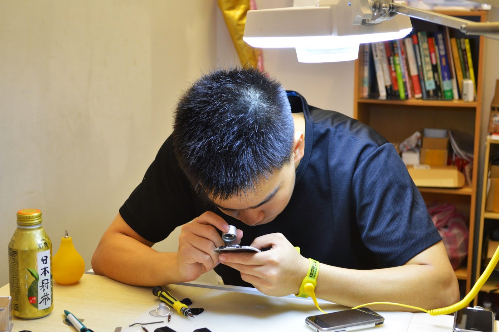 | ▲林衢甫專心維修手機,用誠信與專業換得客戶的信任。 攝影/張佑任 |