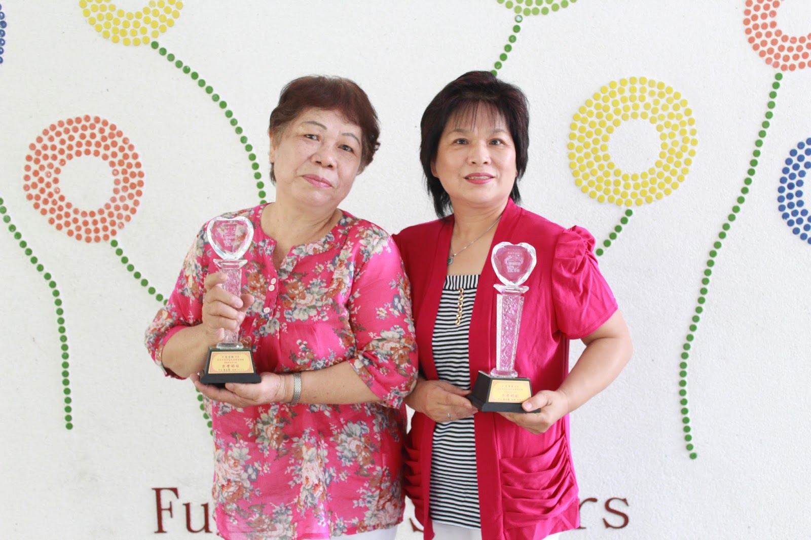 | ▲莊宜臻(左)和王雪麗(右)獲得終身學習楷模獎。 攝影/劉宛欣 |