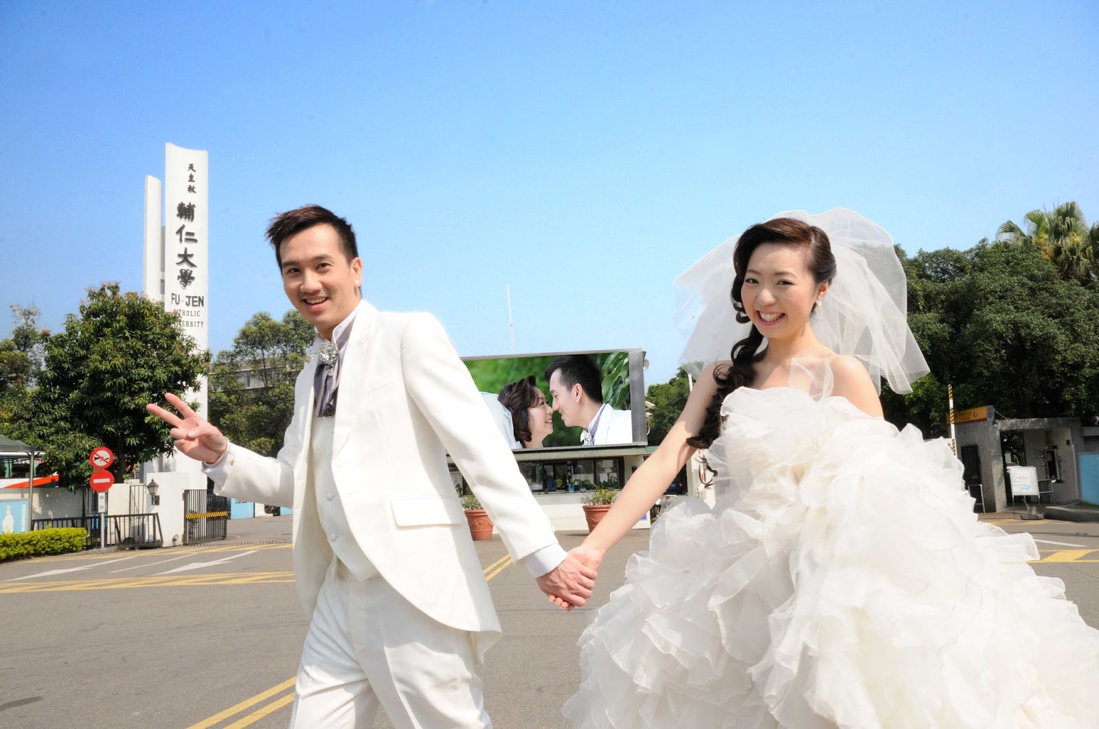 | ▲輔大學生畢業前找老闆謝旭鳴拍學士照,十年後再回輔大請 謝旭鳴拍婚紗照。 謝旭鳴提供 |