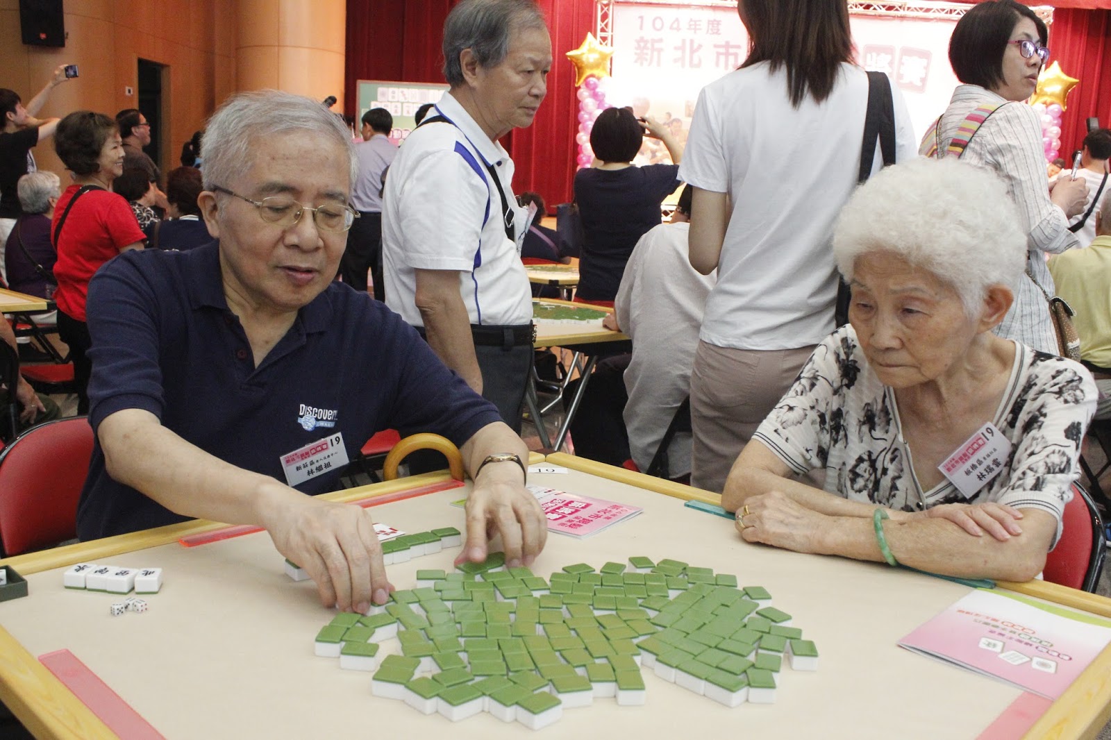 活動現場排滿六十八張麻將桌,頗為壯觀,長輩專心的神情顯得相當投入,樂在其中。來自新莊區老人文康中心的侯淑華說:「這次活動很健康,我來參賽也純粹是為了動腦筋。」