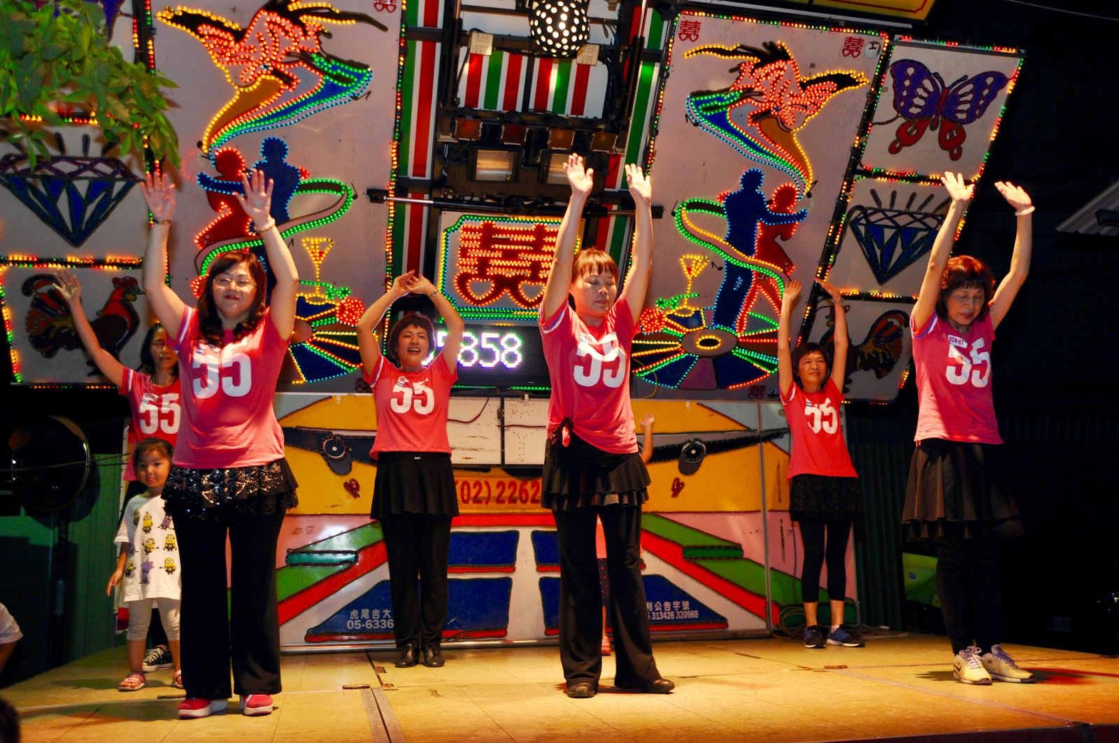 晚會現場有好幾組里民組成團體在舞台上唱歌和跳舞炒熱氣氛,台下觀眾也可以自告奮勇上台點歌演唱。