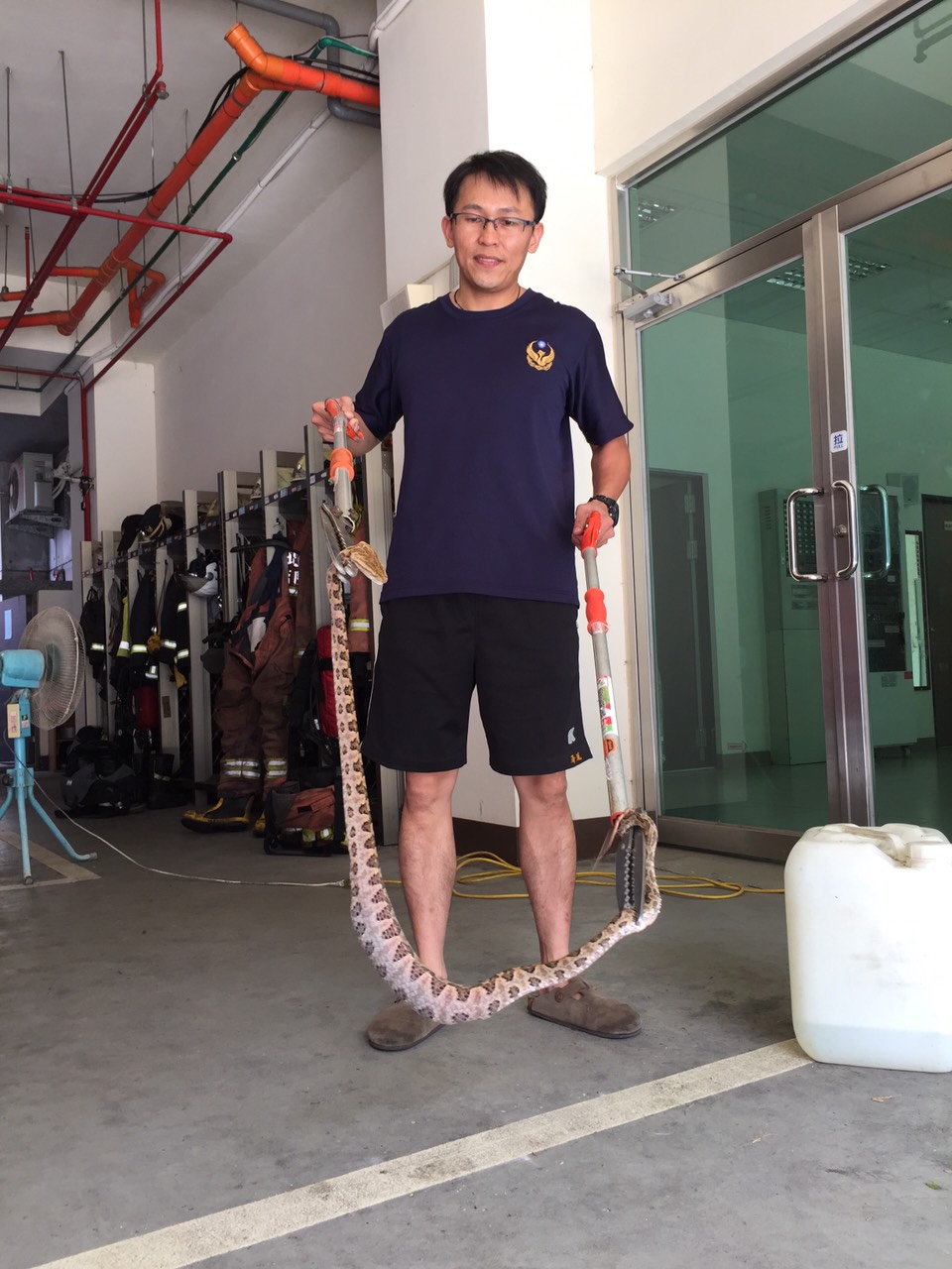 捕捉龜殼花的裕民分隊消防員許政宗建議,以後民眾看到蛇,先把蛇的位置記起來,他們到現場後才可以馬上處理,找來找去有時候可能更危險。