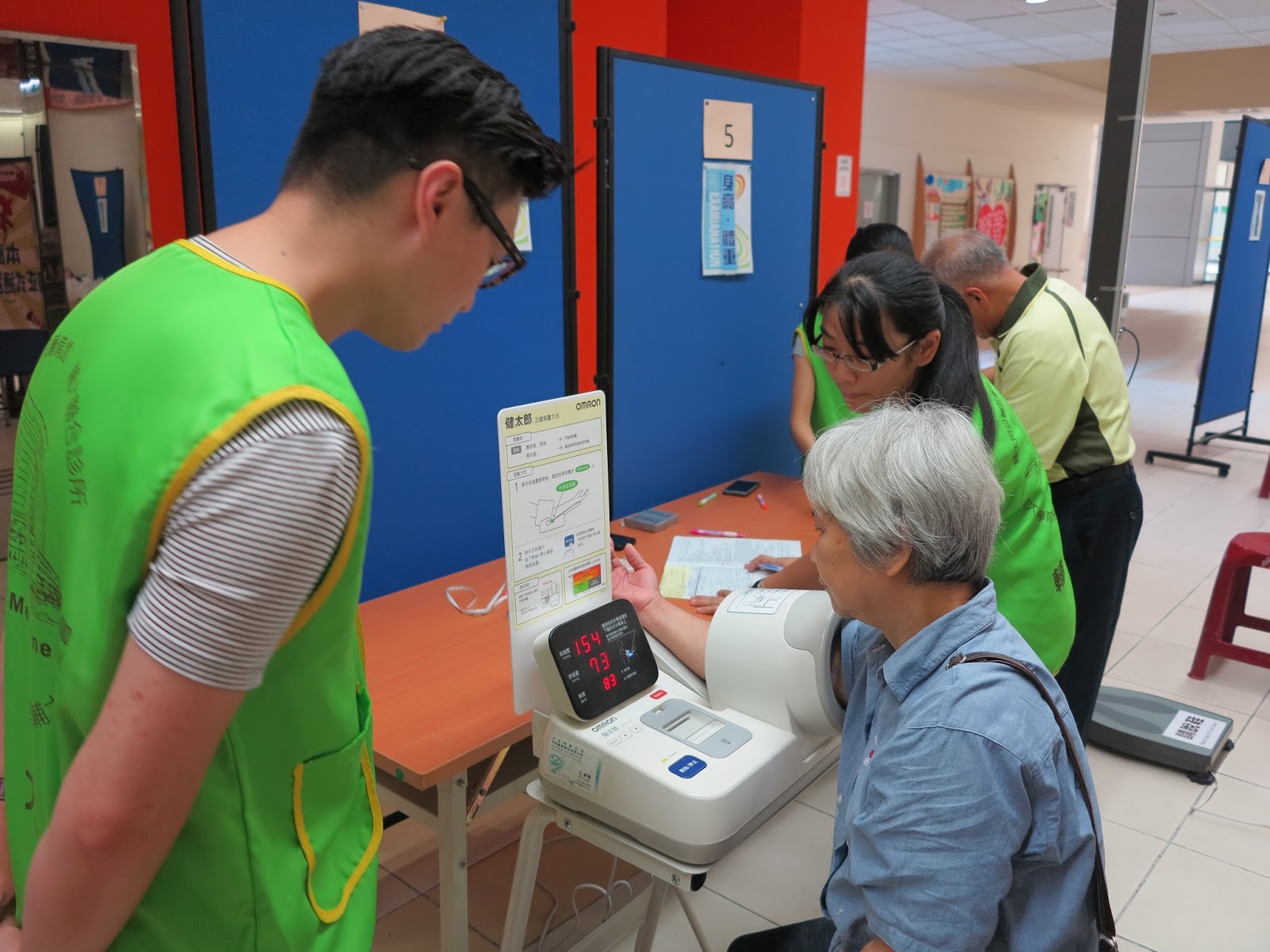 | ▲健康篩檢現場志工協助里民測量血壓。 攝影/陳薏筑 |