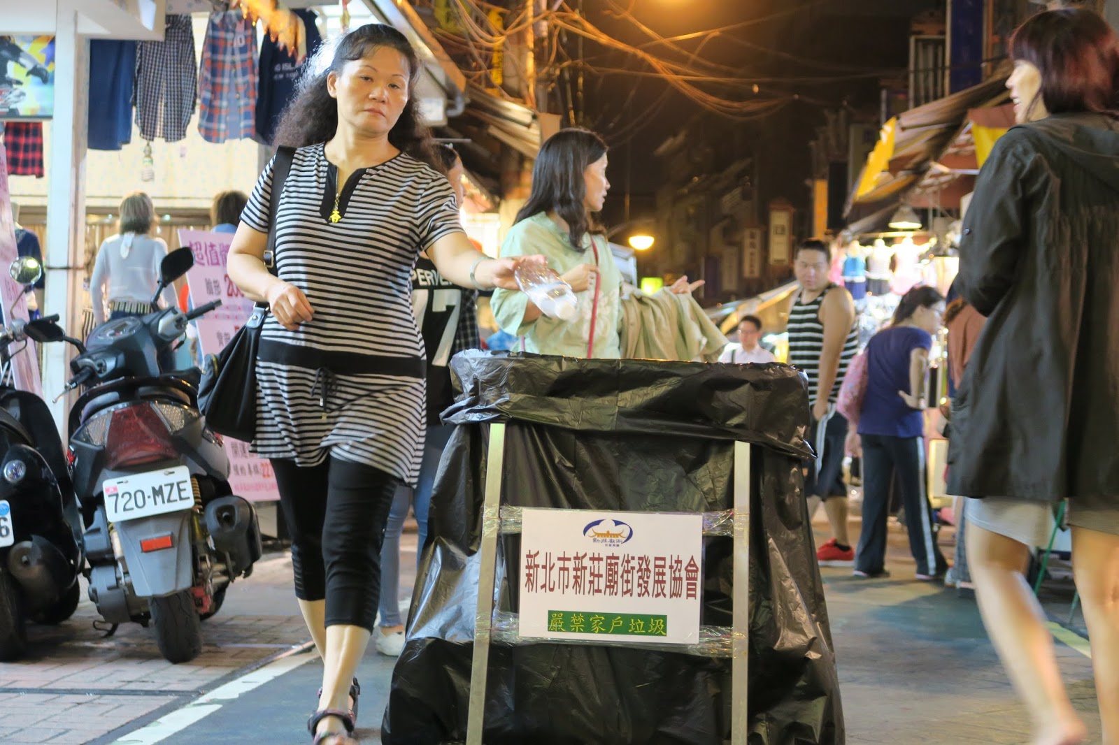 | ▲新莊廟街於每周五、六、日設置垃圾筒,使遊客不再找不到地方丟垃圾。 攝影/陳韻如 |