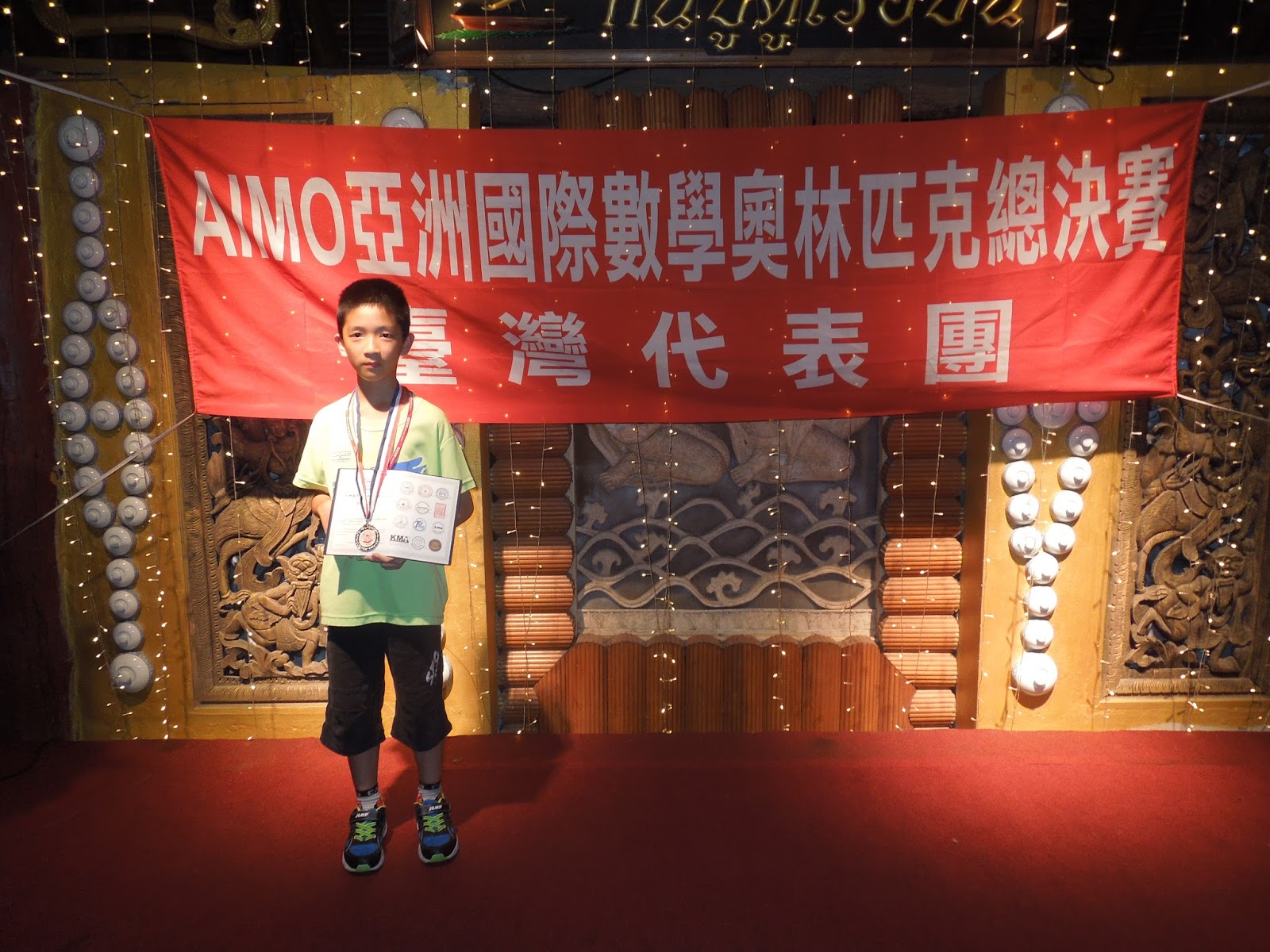 ▲裕民國小學生江威廷在泰國獲2015AIMO四年級組銀獎。江德銘提供